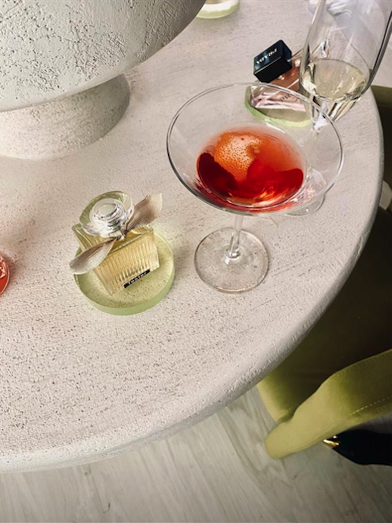Marmo were invited by one of our regular clients to provide the specialist finishes for prominent store features including the beauty bar, beauty box and fragrance tables. The beauty bar was coated with a vibrant coral Microcement, colour matched to a bespoke Pantone colour reference. In the beauty box zone, we applied our directional Travertine polished plaster to the walls and ceiling as well as to a free-standing podium, and our Travertine was also applied to fragrance tables in a neutral off-white shade (pictured below).