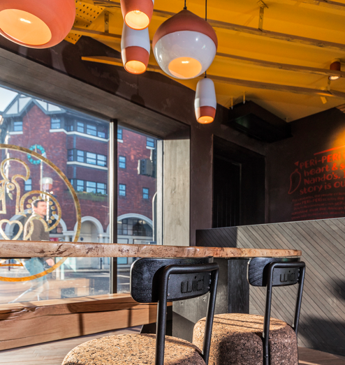 During the past 3 years we have worked closely with the Architects who design the interiors and exteriors for Nandos as well as the contractors who bring the visions to life. Aiding them in creating bespoke textures for use on the projects, they often come to us with ideas that stretch the limitations of the polished plaster materials but this is what makes working on a Nandos so exciting and different to most other restaurants. Nandos love to fill there spaces with often exotic finishes and highend surfaces which we are proud to be a part of - No two Nandos are the same.