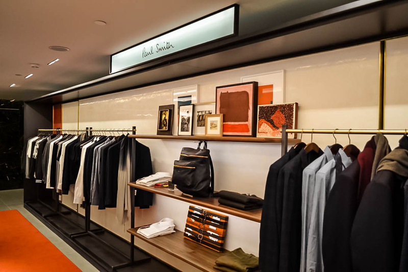 Marmo were comissioned to apply our Marmorino Spatula venetian plaster in 4 bespoke colours for fashion designer Paul Smith for their concession in Harrods department store in London. The four colours were an off white, deep red, lustrious orange and pale pink which were divided by bronze trims into panels. The design takes inspiration from Paul Smith's signature design label which incorporates bright colours.